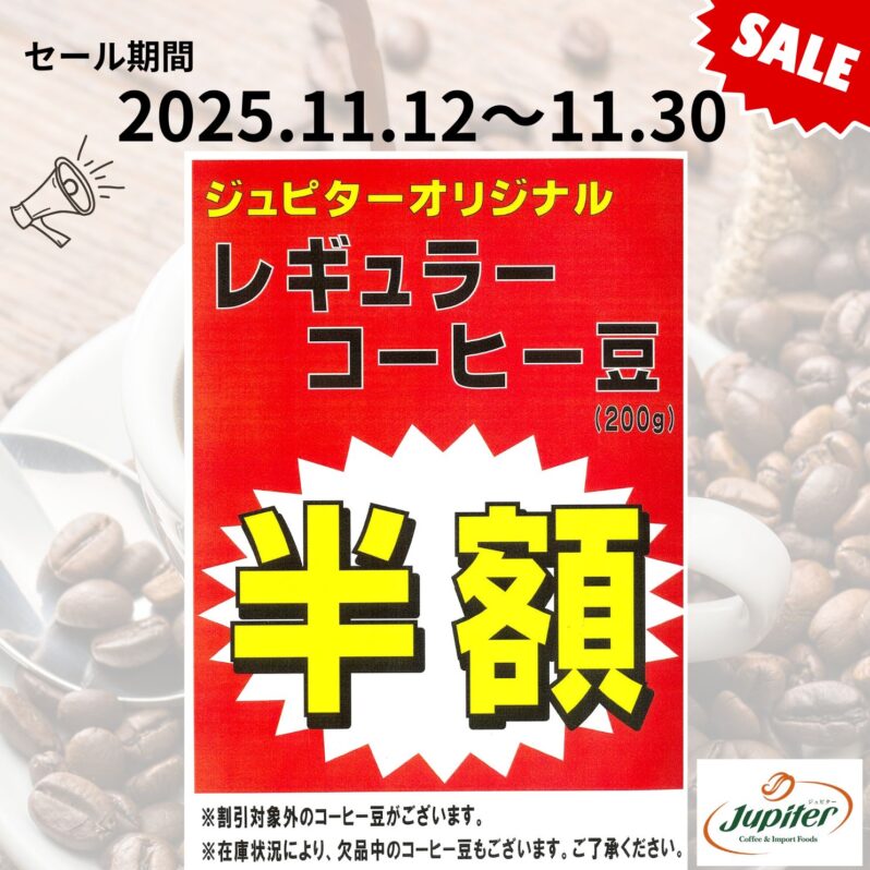 コーヒー豆半額セール開催【ラビナ1F ジュピター】