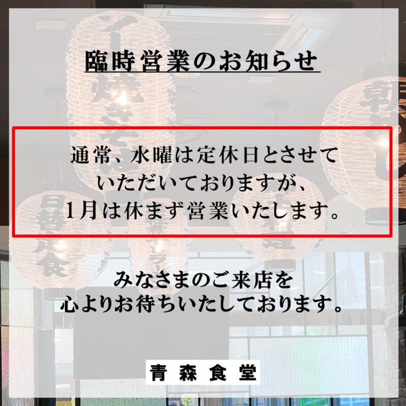 日頃より、青森食堂をご利用いただきまして誠にありがとうございます。