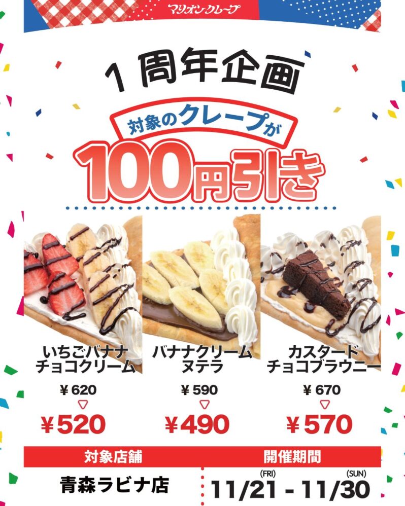 ㊗マリオンクレープ 青森ラビナ店1周年企画