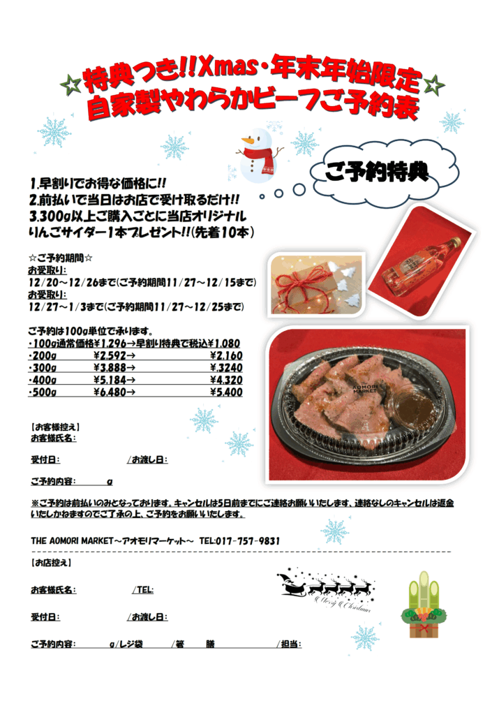 Xmas・年末年始限定!”自家製やわらかビーフ”【ラビナ1F・The AOMORI MARKET】